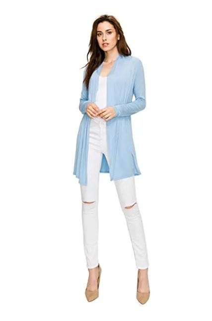 - Comfortable And Stylish. Unlike other cardigans, the Open Front Regular Long Lightweight Wrap Cardigan Sweaters Plus Size are premium material of 48% Polyester/48% Rayon/4% Spandex or 95% Rayon/5% Spandex so that they will last longer. You can wear them for your daily work or for other purposes. You can effortlessly pop your body up onto a fence the moment the impulse strikes. As nice as that.