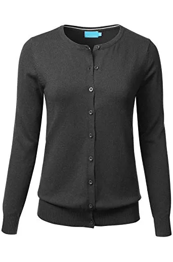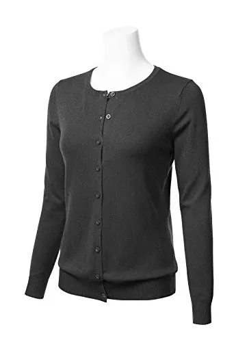FLORIA Women's Button Down Crew Neck Long Sleeve Soft Knit Cardigan Sweater (S-3X)