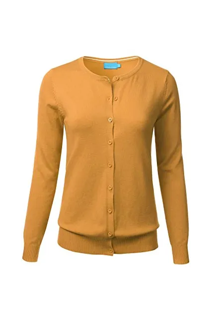 FLORIA Women's Button Down Crew Neck Long Sleeve Soft Knit Cardigan Sweater (S-3X)