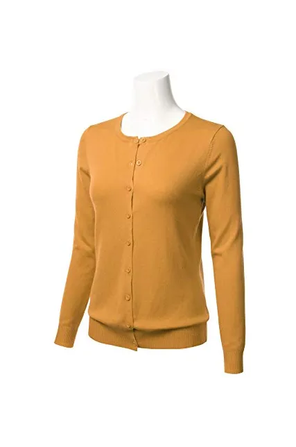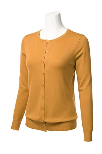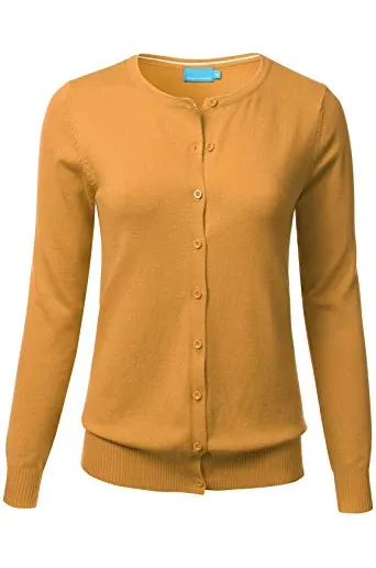 FLORIA Women's Button Down Crew Neck Long Sleeve Soft Knit Cardigan Sweater (S-3X)
