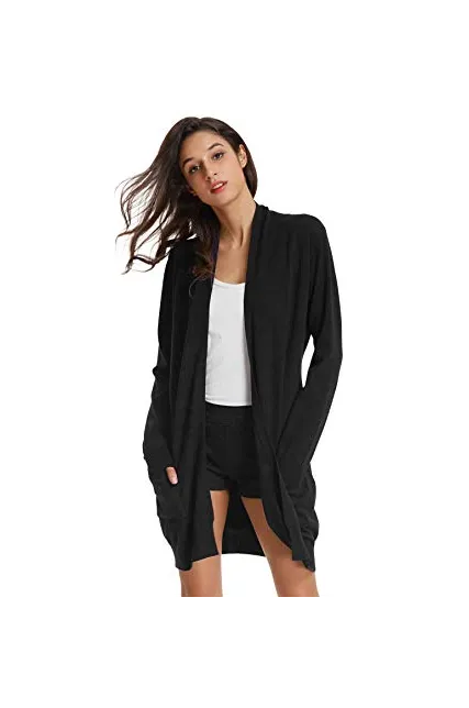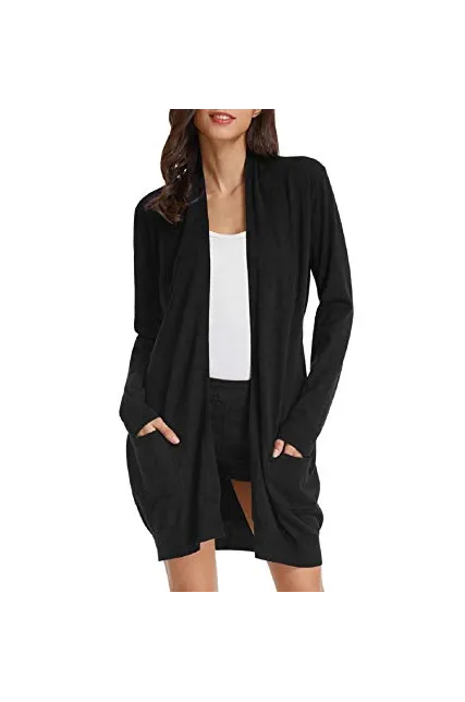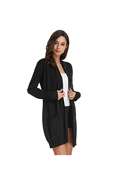 GRACE KARIN Essential Solid Open Front Long Knited Cardigan Sweater for Women (3XL,2 Pack-Black/Dark Grey)