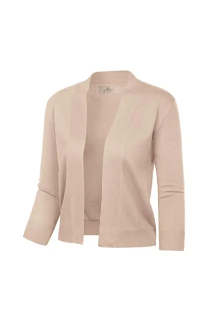 GRACE KARIN Women's 3/4 Sleeve Cardigan Knit Sweaters Cropped Open Front Shrug Bolero