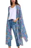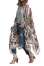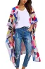Hibluco Women's Sheer Chiffon Floral Kimono Cardigan Long Blouse Loose Tops Outwear
