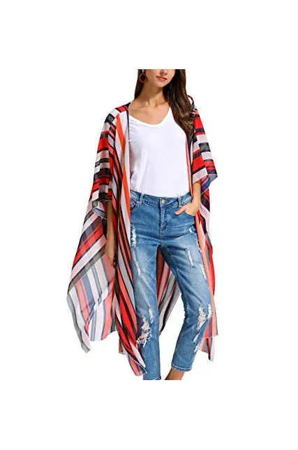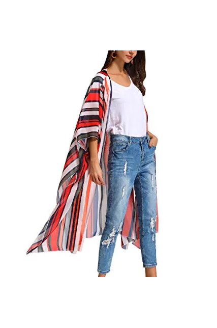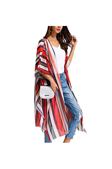 Hibluco Women's Sheer Chiffon Floral Kimono Cardigan Long Blouse Loose Tops Outwear