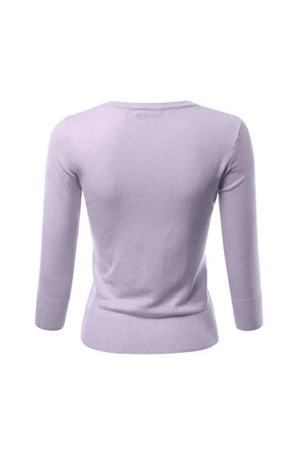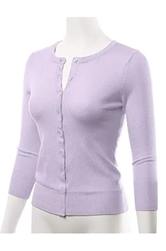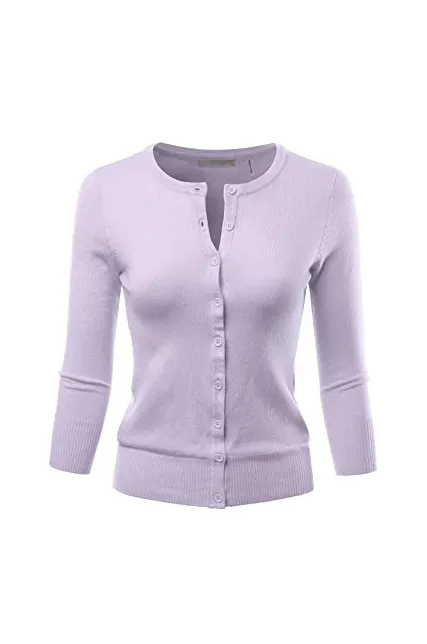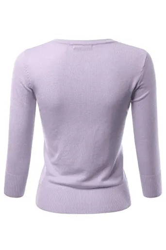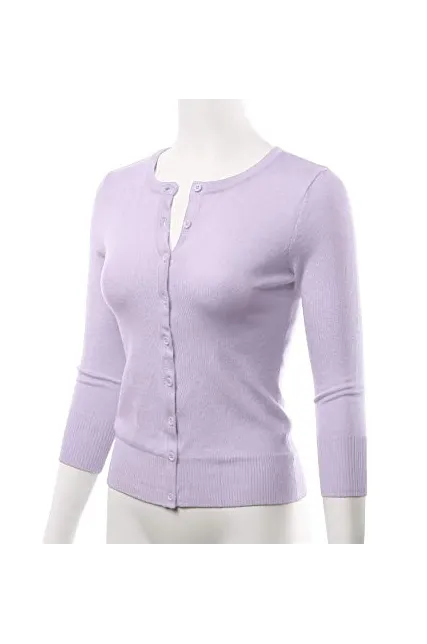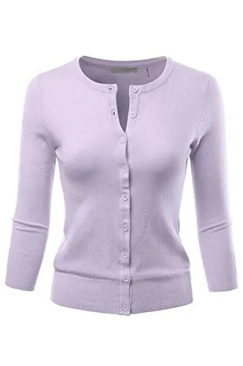- Casual Basic Slim Fit 3/4 Sleeve Button Down Crewneck Stretch Knit Cardigan Sweater
