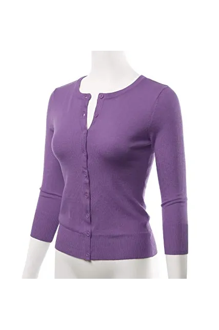 - Casual Basic Slim Fit 3/4 Sleeve Button Down Crewneck Stretch Knit Cardigan Sweater