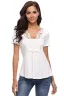 - ❤ Fashion peplum tops, Sexy style, a little low cut, crochet is feminine and flutter sleeves perfect, hide your belly. Fitted through the shoulders and bust and loose around the stomach. The Peplum style hides your belly!
