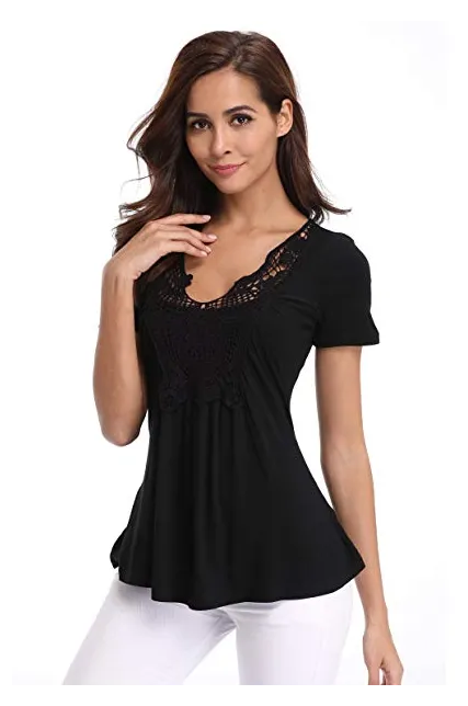 - ❤ Fashion peplum tops, Sexy style, a little low cut, crochet is feminine and flutter sleeves perfect, hide your belly. Fitted through the shoulders and bust and loose around the stomach. The Peplum style hides your belly!