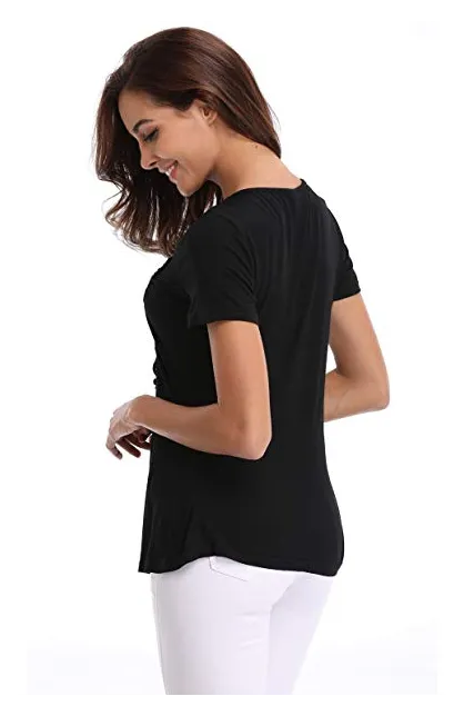 - ❤ Basic and stylish outfit, regular fit, It’s a Short sleeved, V-neck blouse in airy, woven fabric with the decorative front ruched design. It’s the Perfect solution for a casual feminine look. Maternity tops, pregnant women can also wear this top as it covers the belly.