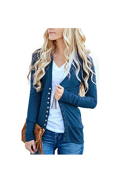 - Button closure,Classic V-Neck With Good Stretchy Material,Long Sleeve Soft Knit Button Down Cardigan
