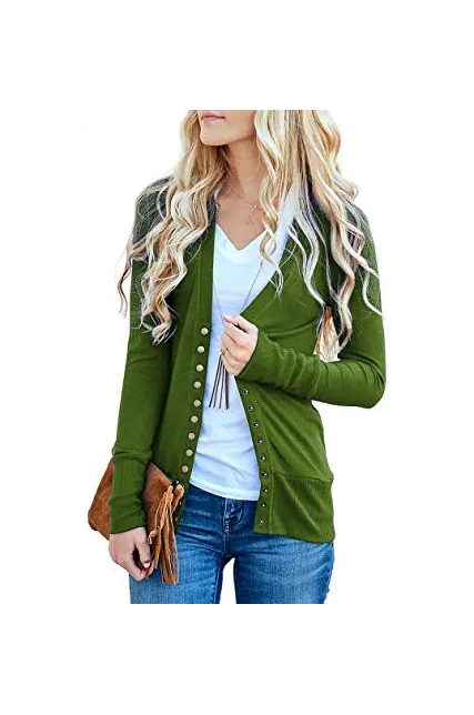 - Button closure,Classic V-Neck With Good Stretchy Material,Long Sleeve Soft Knit Button Down Cardigan