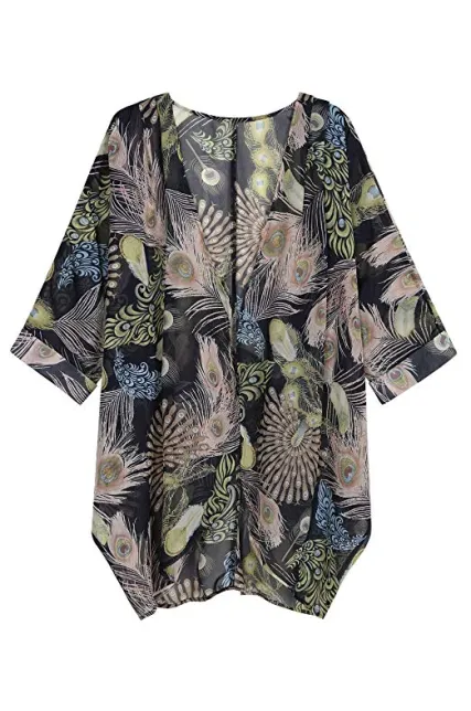 - Style: Cute Bohemia floral print, Open Front, bat sleeve, loose fit, boho style, Shawl sheer chiffon kimono, match for bikini, swimwear, beachwear or any summer dress and shorts.