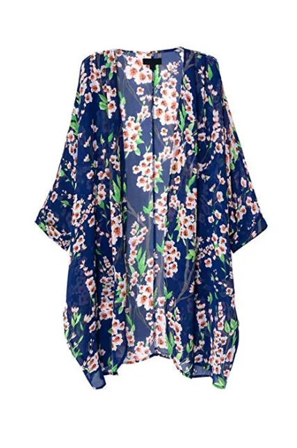 - Style: Cute Bohemia floral print, Open Front, bat sleeve, loose fit, boho style, Shawl sheer chiffon kimono, match for bikini, swimwear, beachwear or any summer dress and shorts.