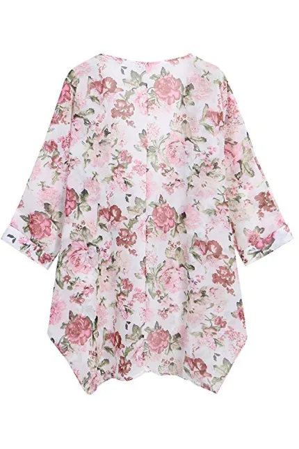 - Style: Cute Bohemia floral print, Open Front, bat sleeve, loose fit, boho style, Shawl sheer chiffon kimono, match for bikini, swimwear, beachwear or any summer dress and shorts.