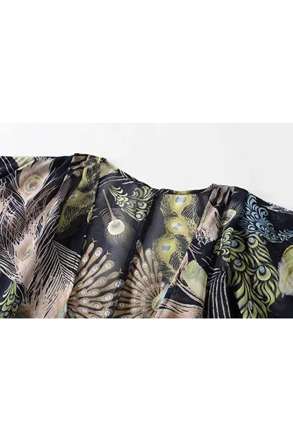 - Style: Cute Bohemia floral print, Open Front, bat sleeve, loose fit, boho style, Shawl sheer chiffon kimono, match for bikini, swimwear, beachwear or any summer dress and shorts.