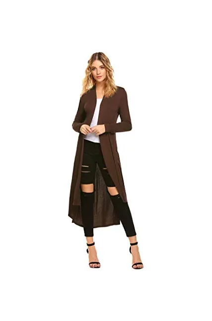 POGTMM Women's Long Open Front Drape Lightweight Duster High Low Hem Maxi Long Sleeve Cardigan with Pocket(S-3XL)