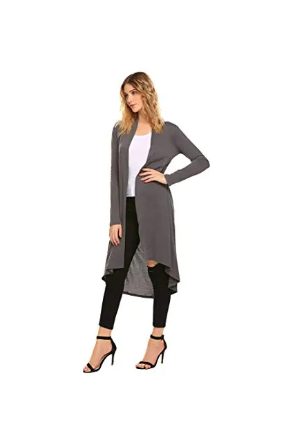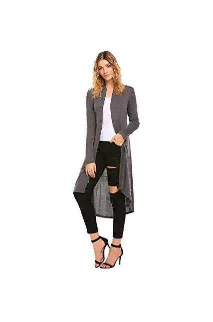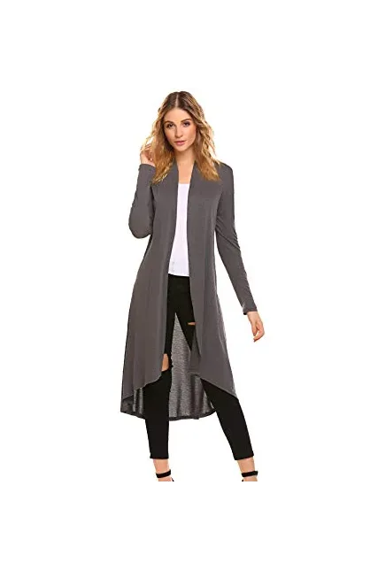 POGTMM Women's Long Open Front Drape Lightweight Duster High Low Hem Maxi Long Sleeve Cardigan with Pocket(S-3XL)