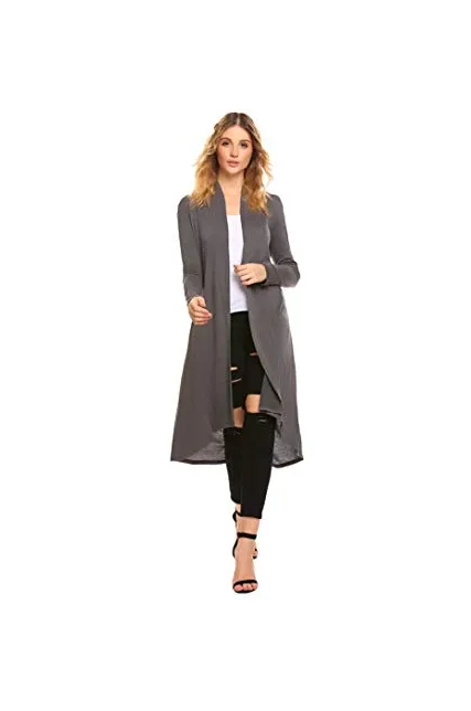 POGTMM Women's Long Open Front Drape Lightweight Duster High Low Hem Maxi Long Sleeve Cardigan with Pocket(S-3XL)