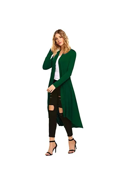 POGTMM Women's Long Open Front Drape Lightweight Duster High Low Hem Maxi Long Sleeve Cardigan with Pocket(S-3XL)