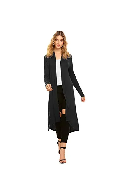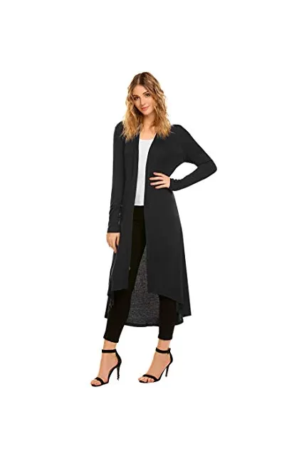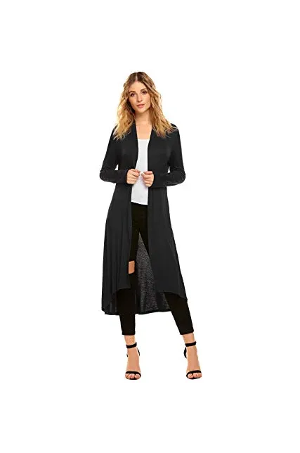POGTMM Women's Long Open Front Drape Lightweight Duster High Low Hem Maxi Long Sleeve Cardigan with Pocket(S-3XL)