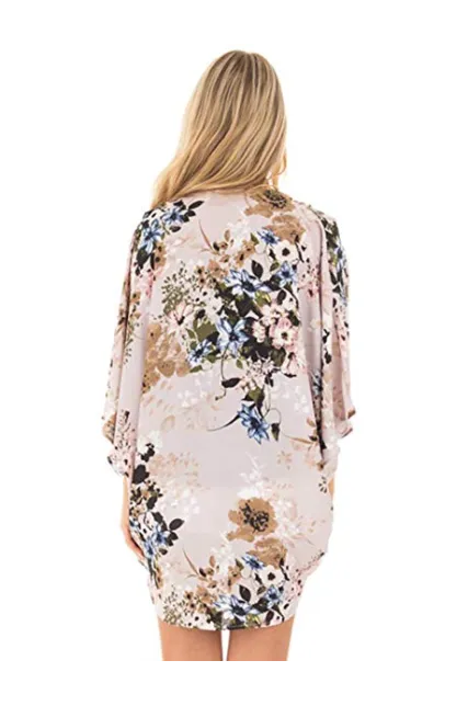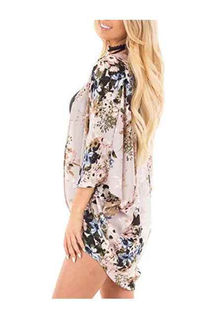 PRETTODAY Women's Floral Print Kimonos Loose Half Sleeve Shawl Chiffon Cardigan Blouses Casual Beach Cover Ups