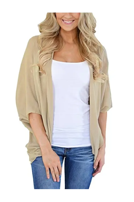 PRETTODAY Women's Summer Loose Kimono Cardigans Batwing Sleeve Sheer Shawl Cover ups