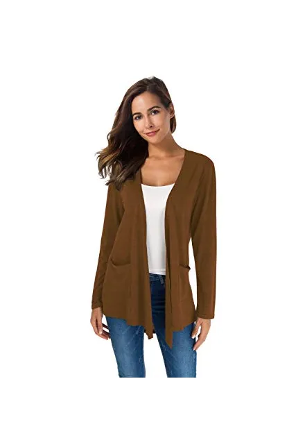 TownCat Women's Loose Casual Long Sleeved Open Front Breathable Cardigans with Pocket