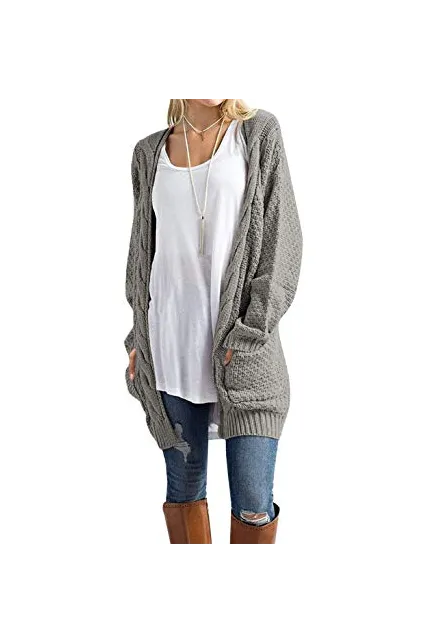 - Women's Open Front Pockets Long Sleeve Classic Cable Knit Long Sleeve Cardigan / Women's Boho Long Sleeve Open Front Chunky Warm Cardigans Loose Pullover Sweater Blouses