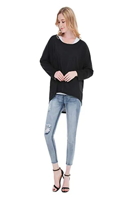 - Features:Cute solid color pullover tunic shirt,designed O neck and batwing sleeve,a baggy fit and very flattering at the back as it covers your bum,high-low hemline,to show off your charming curves.