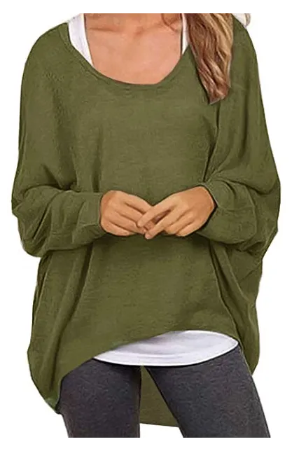 - Features:Cute solid color pullover tunic shirt,designed O neck and batwing sleeve,a baggy fit and very flattering at the back as it covers your bum,high-low hemline,to show off your charming curves.