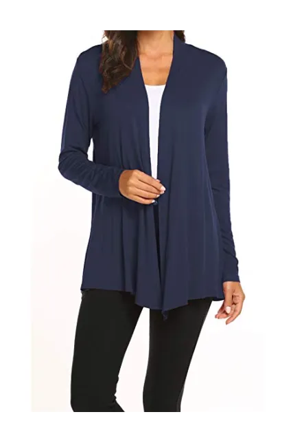 Womens Casual Lightweight Long Sleeve Cardigan Soft Drape Open Front Fall Dusters (S-3X)