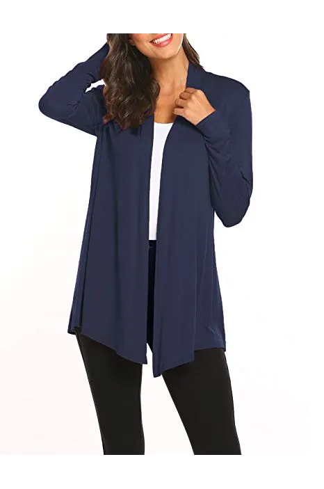 Womens Casual Lightweight Long Sleeve Cardigan Soft Drape Open Front Fall Dusters (S-3X)