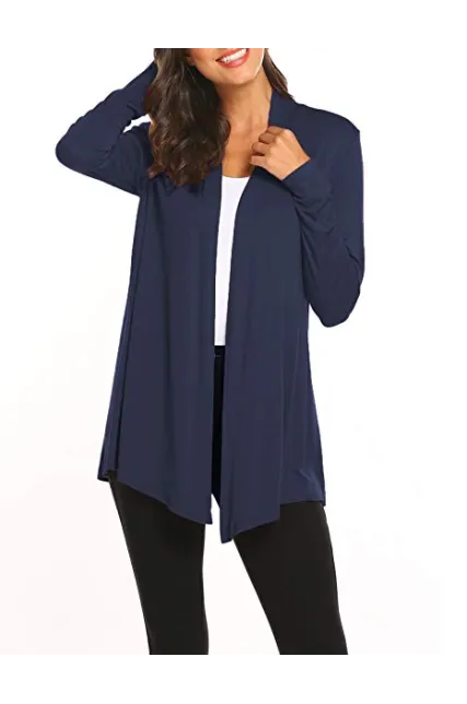 Womens Casual Lightweight Long Sleeve Cardigan Soft Drape Open Front Fall Dusters (S-3X)
