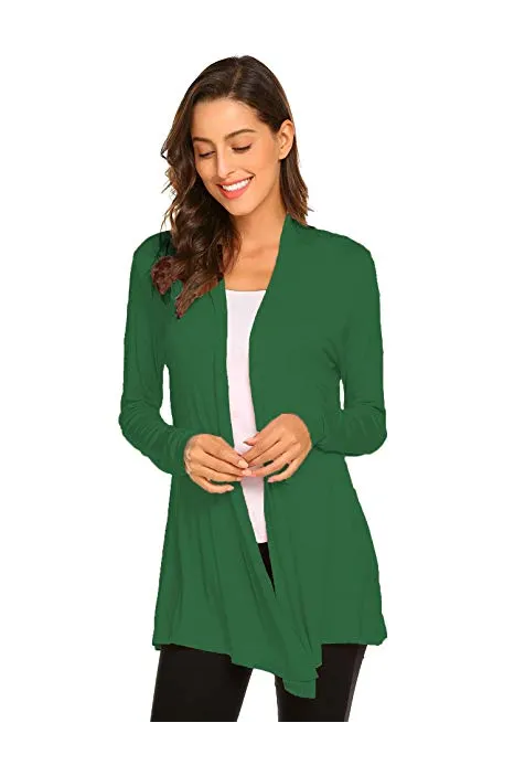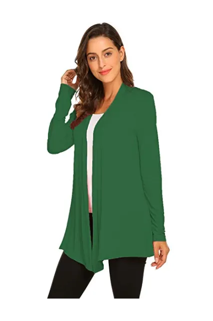 Womens Casual Lightweight Long Sleeve Cardigan Soft Drape Open Front Fall Dusters (S-3X)