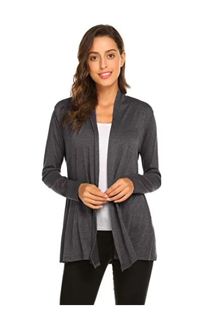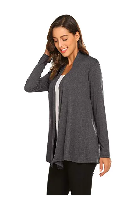 Womens Casual Lightweight Long Sleeve Cardigan Soft Drape Open Front Fall Dusters (S-3X)