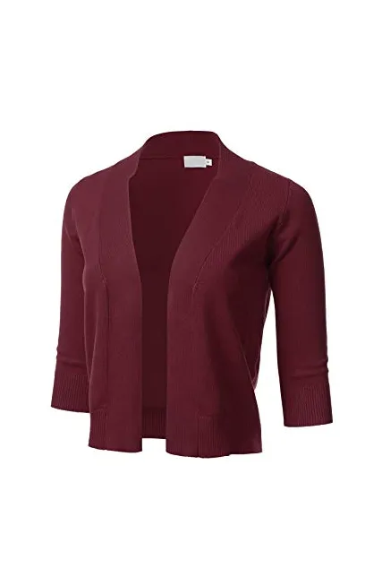 - Classic 3/4 Sleeve Open Front Cropped Cardigan with Ribbed Hem