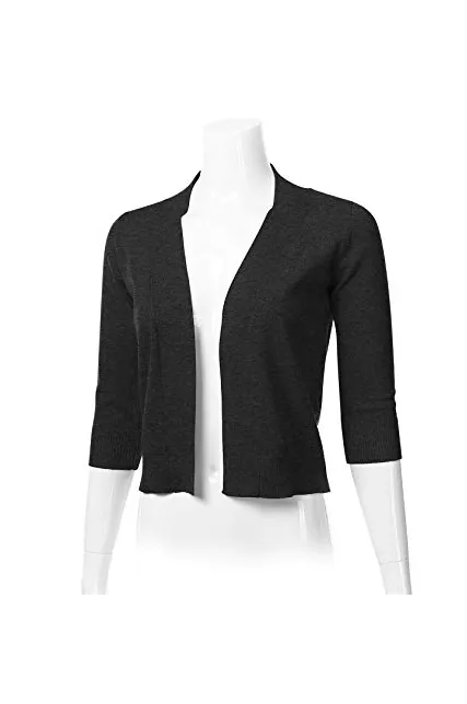- Classic 3/4 Sleeve Open Front Cropped Cardigan with Ribbed Hem