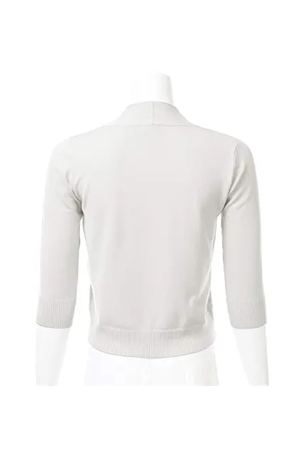 - Classic 3/4 Sleeve Open Front Cropped Cardigan with Ribbed Hem