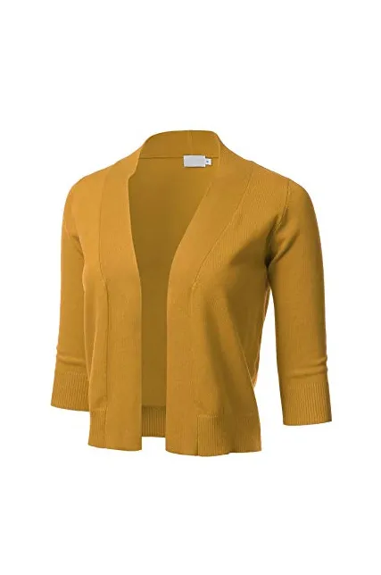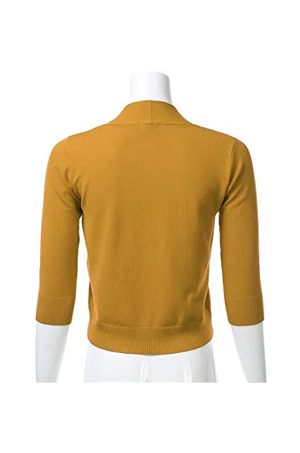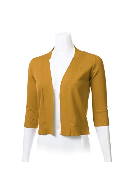 - Classic 3/4 Sleeve Open Front Cropped Cardigan with Ribbed Hem
