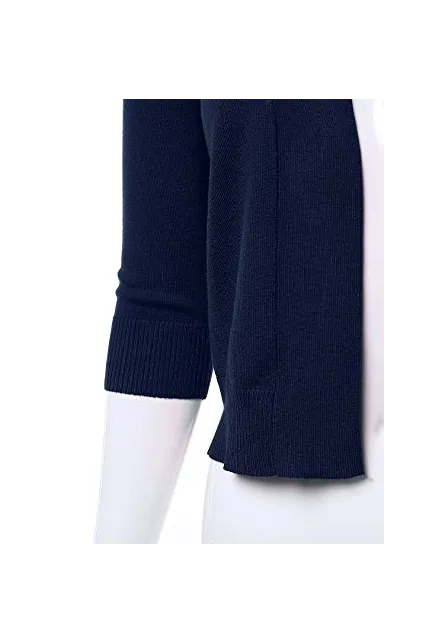 - Classic 3/4 Sleeve Open Front Cropped Cardigan with Ribbed Hem