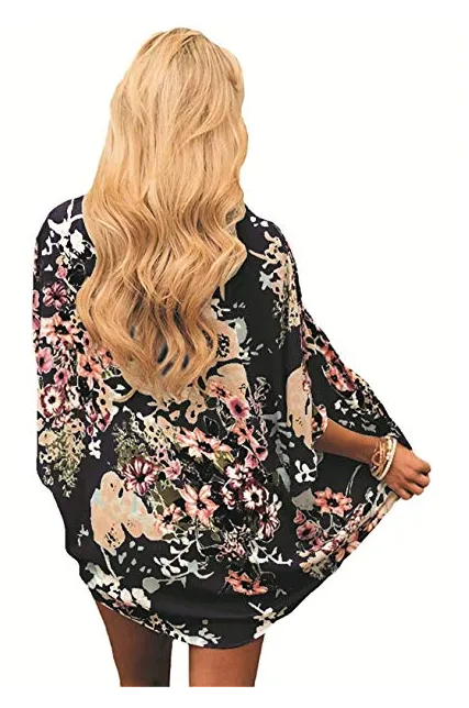 - Design: Floral Print, Half Sleeve, Open Front, Loose Kimono Cardigan Cove Up
