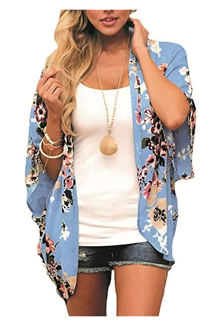 - Design: Floral Print, Half Sleeve, Open Front, Loose Kimono Cardigan Cove Up