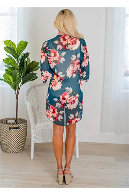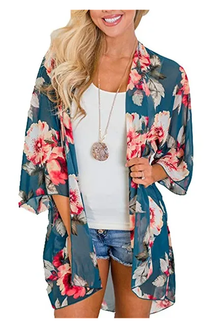 - Design: Floral Print, Half Sleeve, Open Front, Loose Kimono Cardigan Cove Up