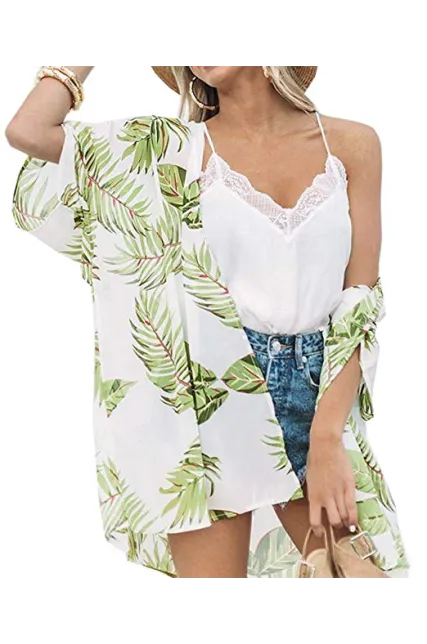 - Design: Floral Print, Half Sleeve, Open Front, Loose Kimono Cardigan Cove Up