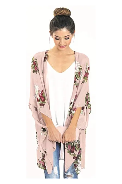 - Design: Floral Print, Half Sleeve, Open Front, Loose Kimono Cardigan Cove Up