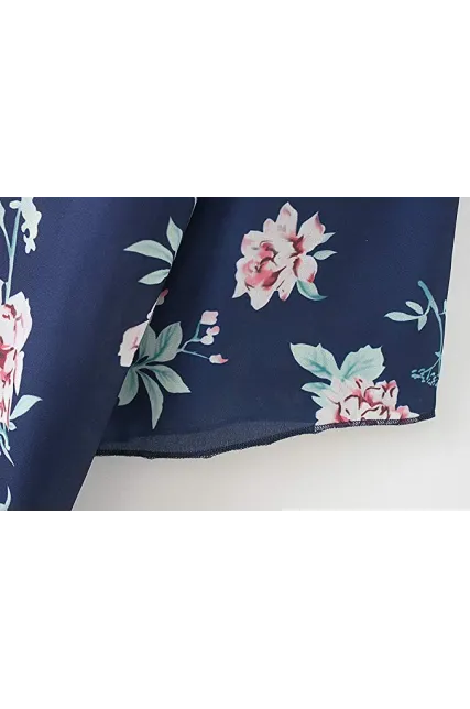 - Womens Floral Print Loose Puff Sleeve Kimono Cardigan Lace Patchwork Cover up Blouse