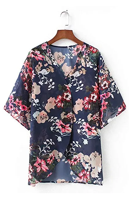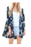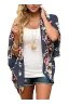 Women's Floral Print Puff Sleeve Kimono Cardigan Loose Cover Up Casual Blouse Tops