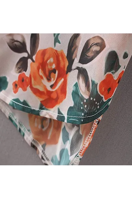- Womens Floral Print Loose Puff Sleeve Kimono Cardigan Lace Patchwork Cover up Blouse