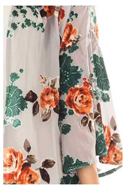 - Features: Floral Cardigan, Loose Puff Sleeve, Chiffon, Open Front, Lace Patchwork, Loose Kimono Cardigan