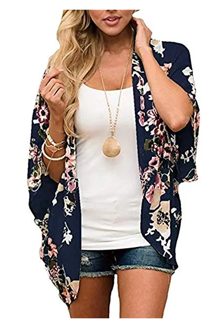 - Style : These women's Loose shawl chiffon kimono blouse tops designed in Bohemia floral print, open front, bat sleeve, loose fit, boho style,cute to go with bikini, swimwear, beach suits or any summer dress and shorts.Easy to dress up and down to make you a chic look .